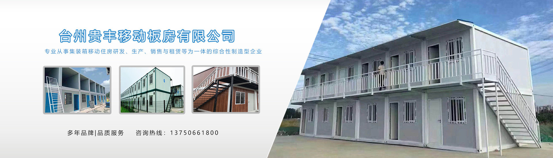 臺州貴豐移動板房有限公司從事集裝箱移動住房研發、生產、銷售與租賃等為一體的綜合性制造型企業。貴豐移動房為滿足工程項目簡單住宿、辦公而研發的組合式集裝箱移動房,該產品可單獨使用、可疊加兩層、也可實現橫向大空間連通,作為大空間辦公室、會議室、食堂等功能使用。 產品被廣泛適用于工地工廠住房,拆遷過渡房,應急辦公室,值班崗亭,門面房,樓房建筑類、高速公路類、高速鐵路類、軍工工程類、救災安置房類、鋼結構組合房類、特種鋼結構組合房等戶外作業領域。另可根據客